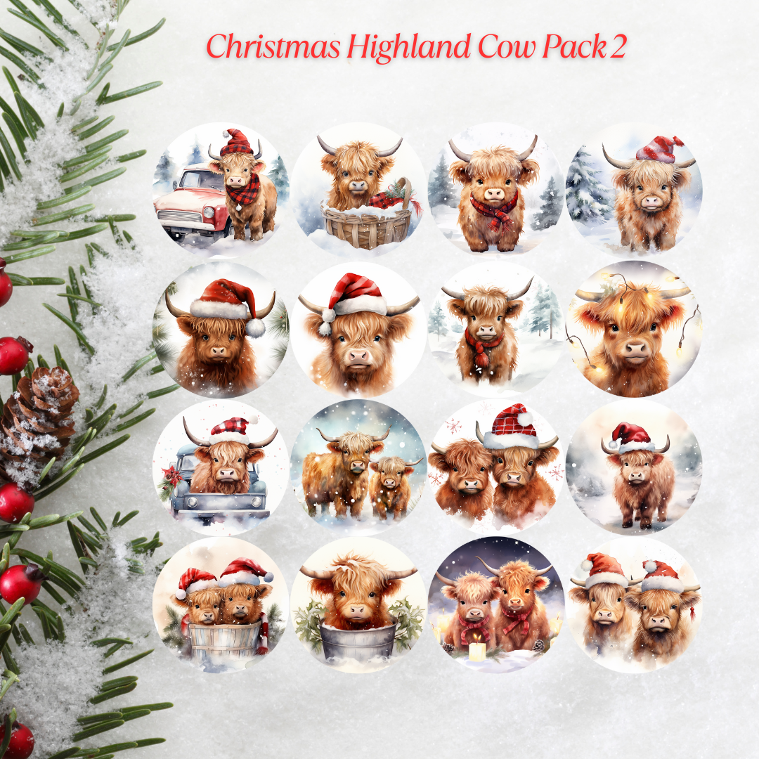 Christmas Highland Cow Pack 2 Christmas Cardstock - 2.5"