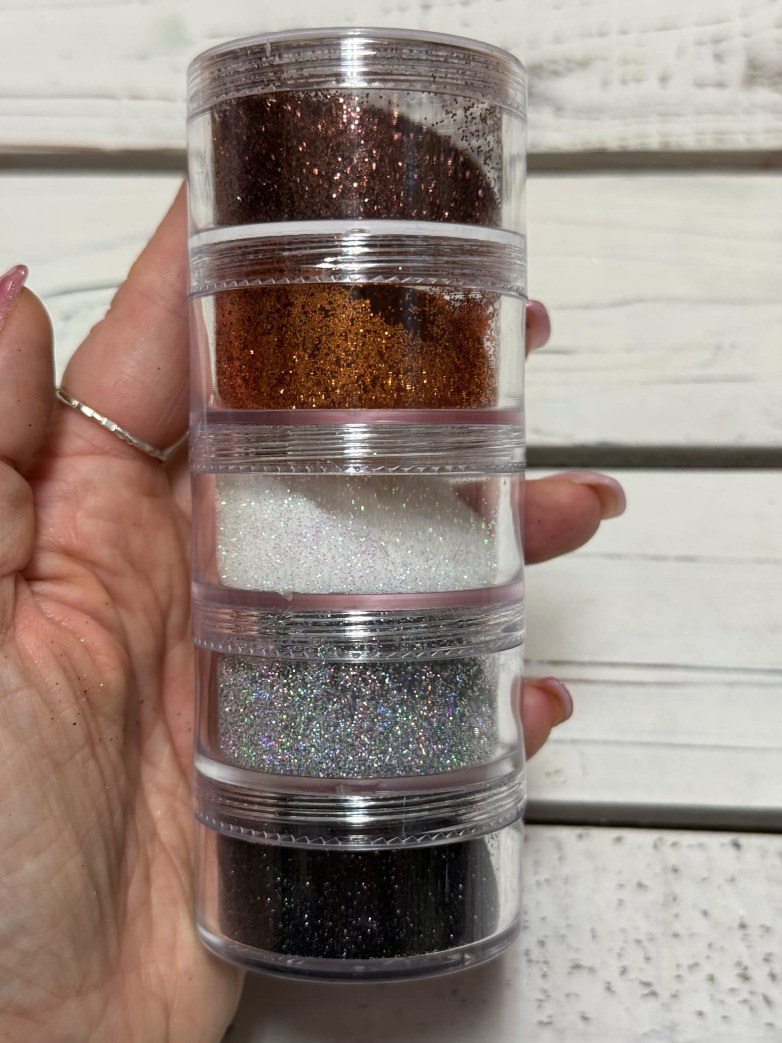 Get your glitter on! Check out these fantastic glitter stackers, available in three stunning color themes. Each stack contains 10 grams of glitter.