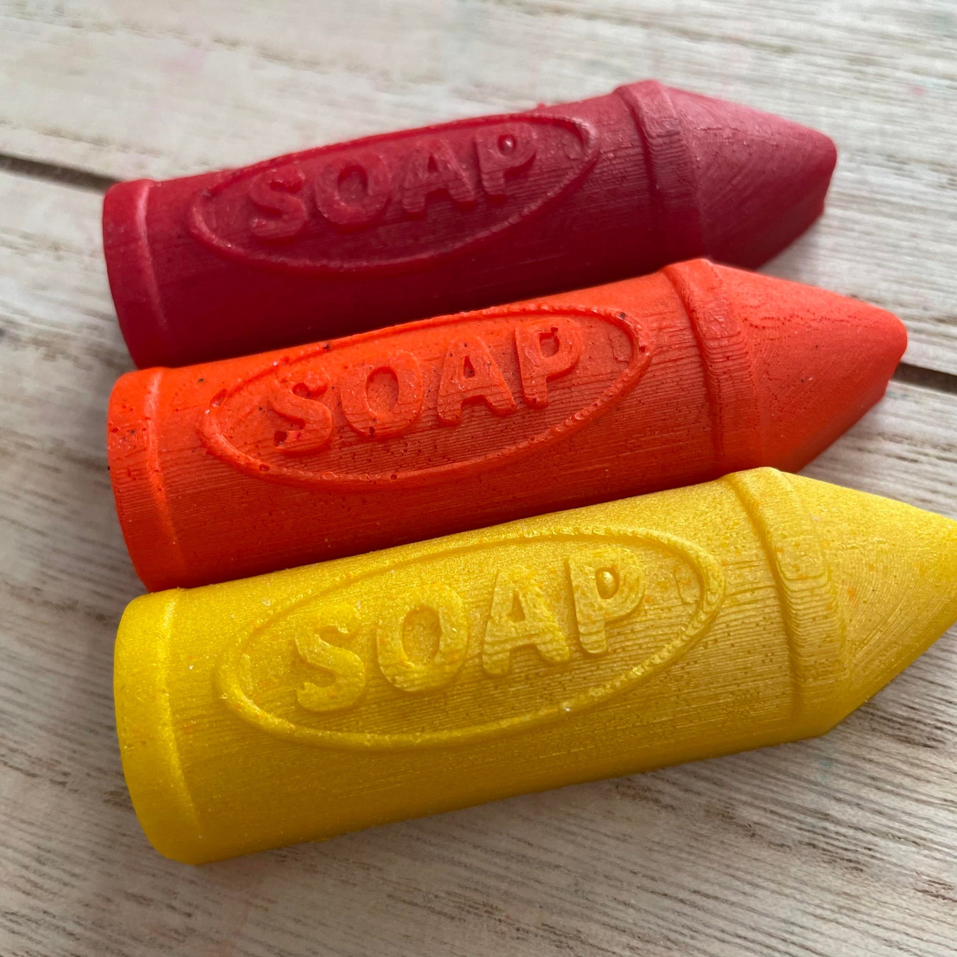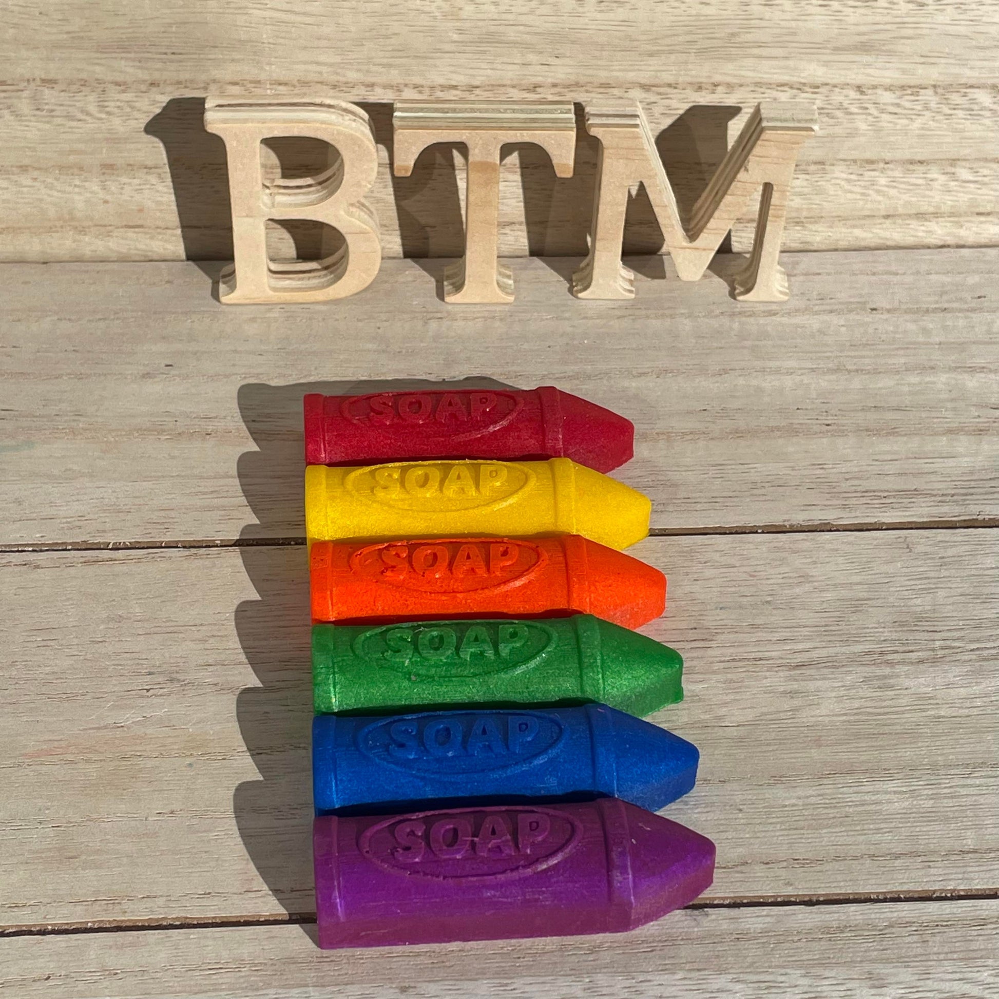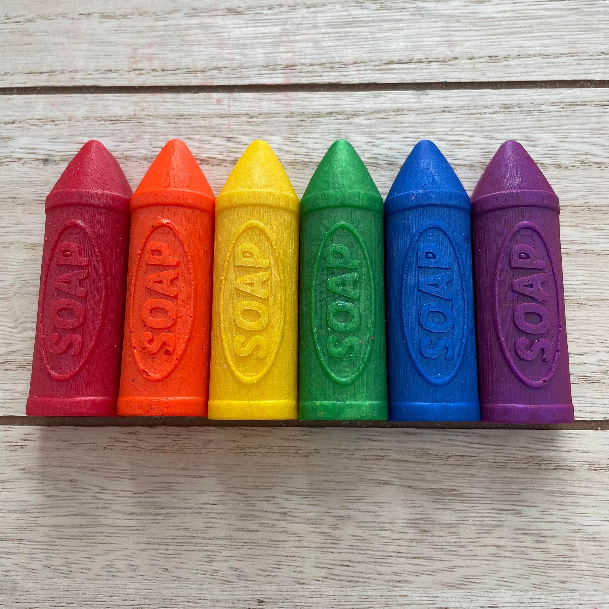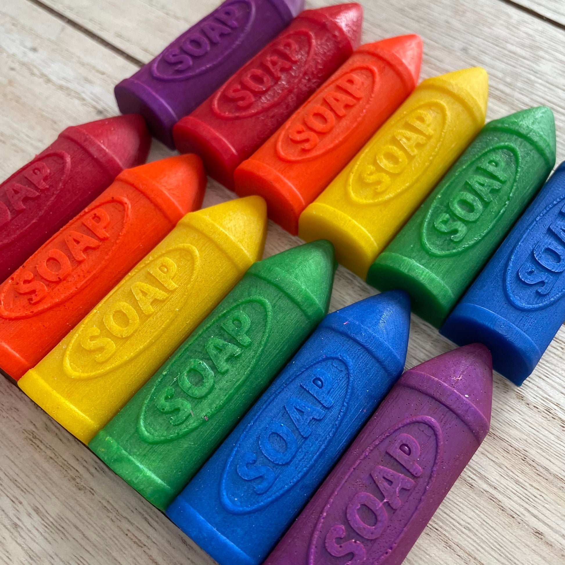 Each crayon is a slightly different length dependent on Character. On average they are 2.5" long and 0.5" deep. Crayon base is 0.6" wide, and the heads are roughly 1" wide.