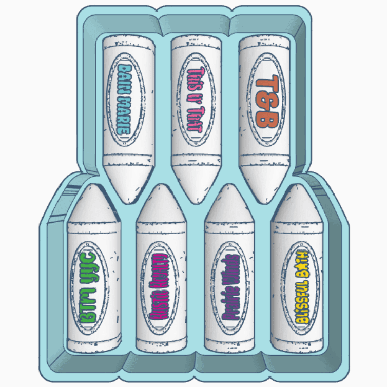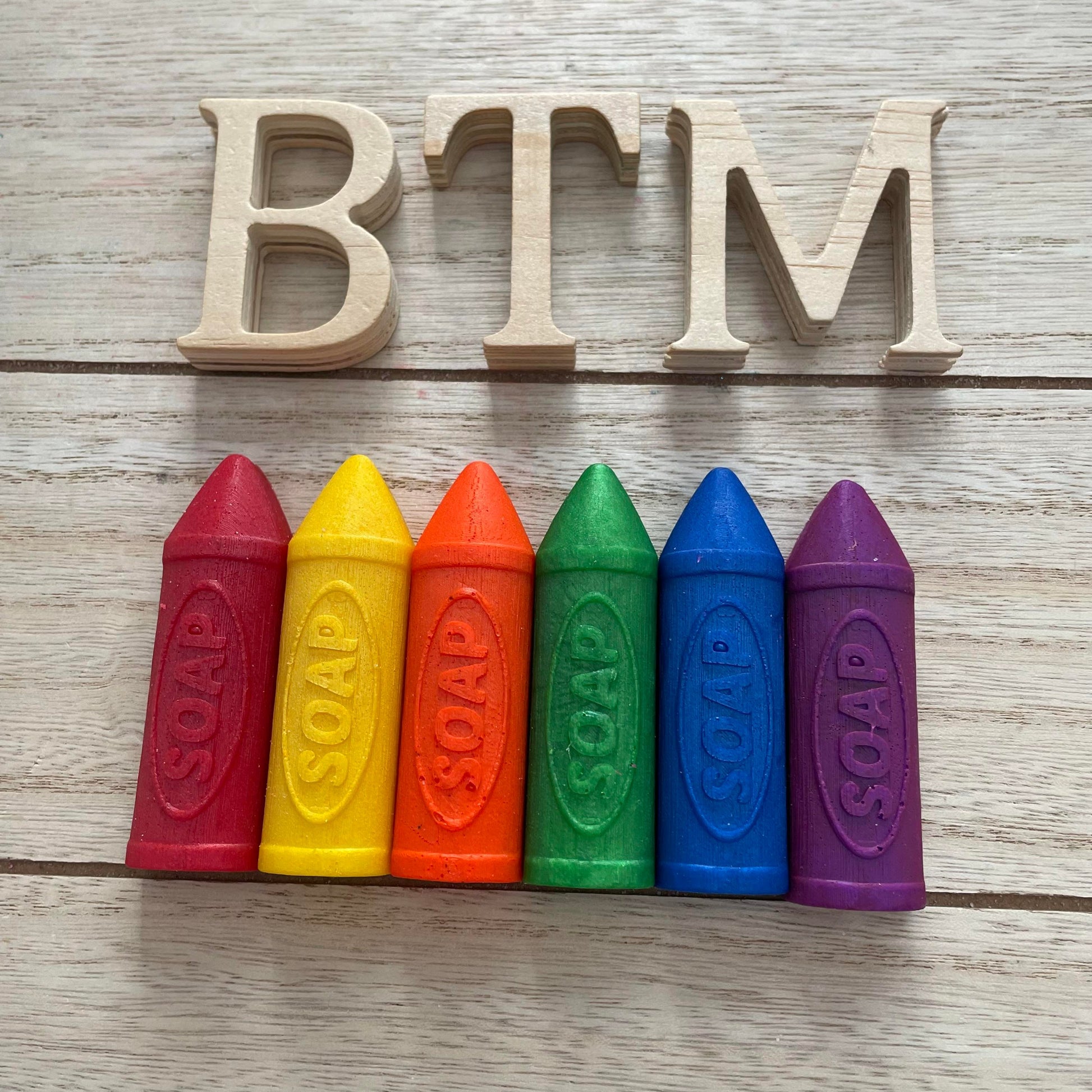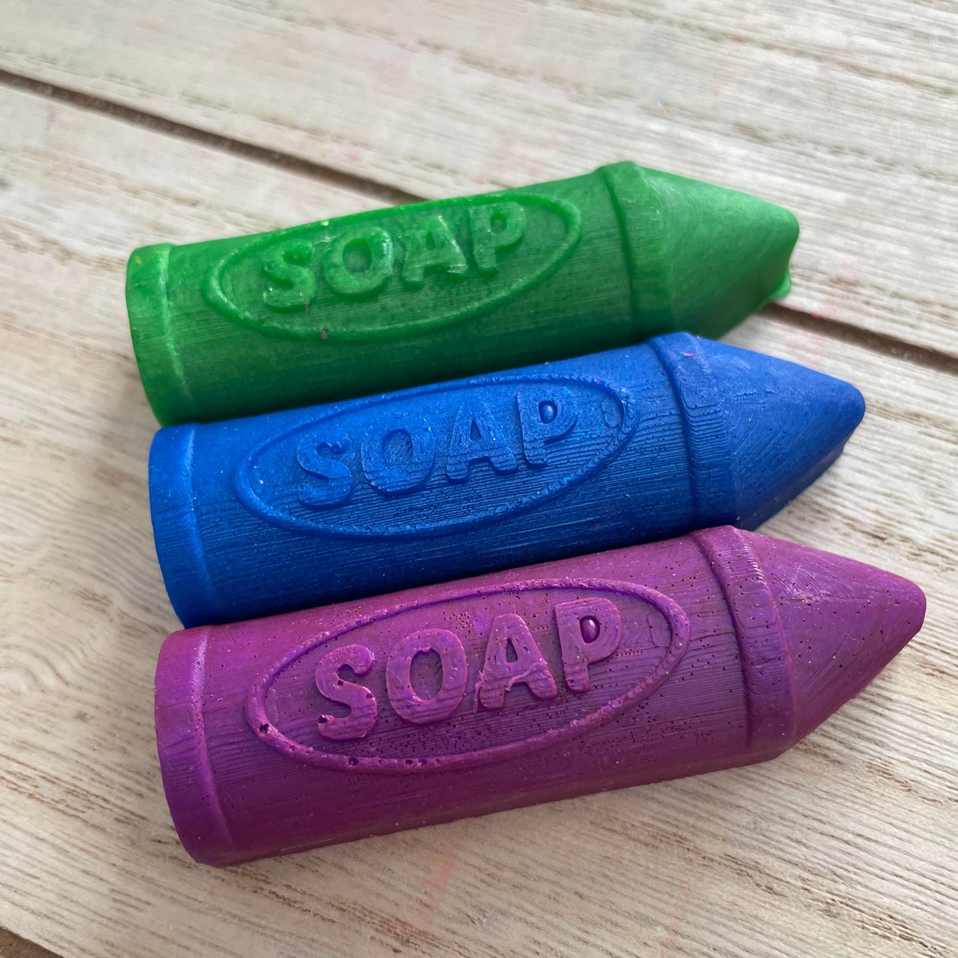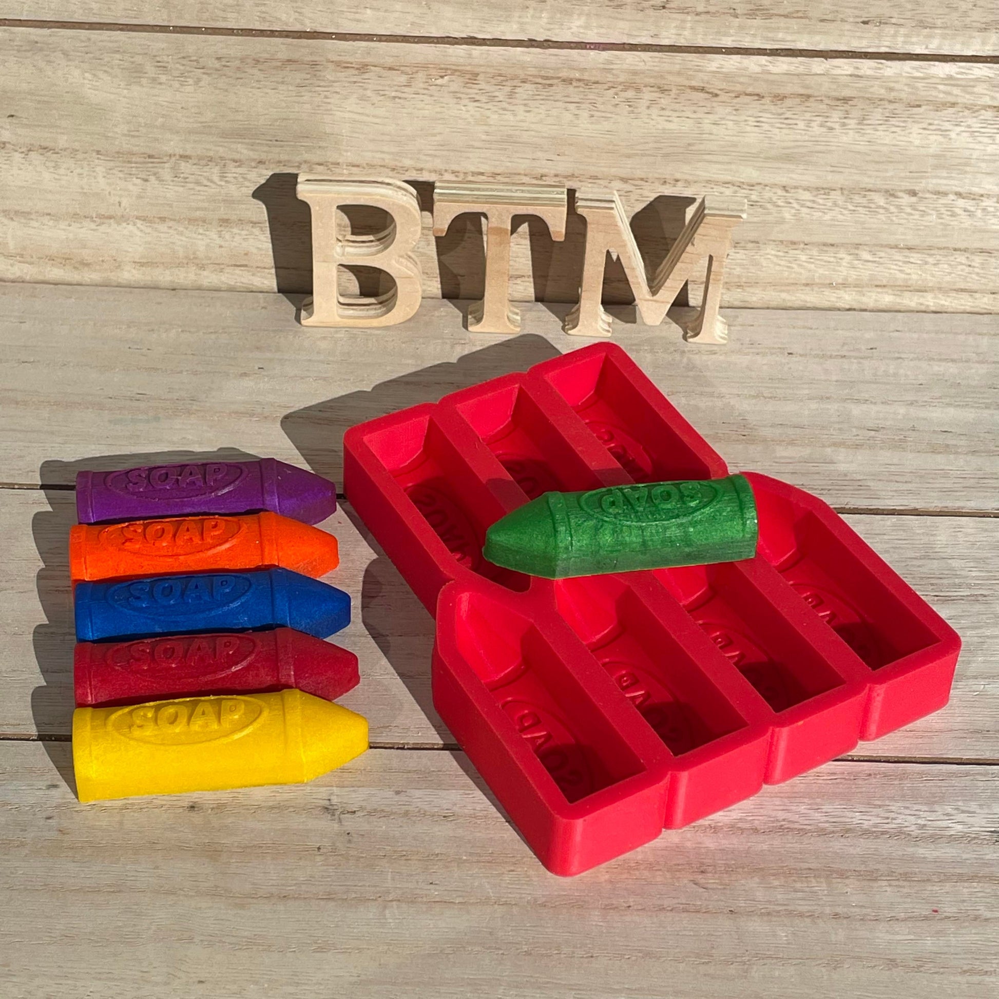 Each crayon is a slightly different length dependent on Character. On average they are 2.5" long and 0.5" deep. Crayon base is 0.6" wide, and the heads are roughly 1" wide.