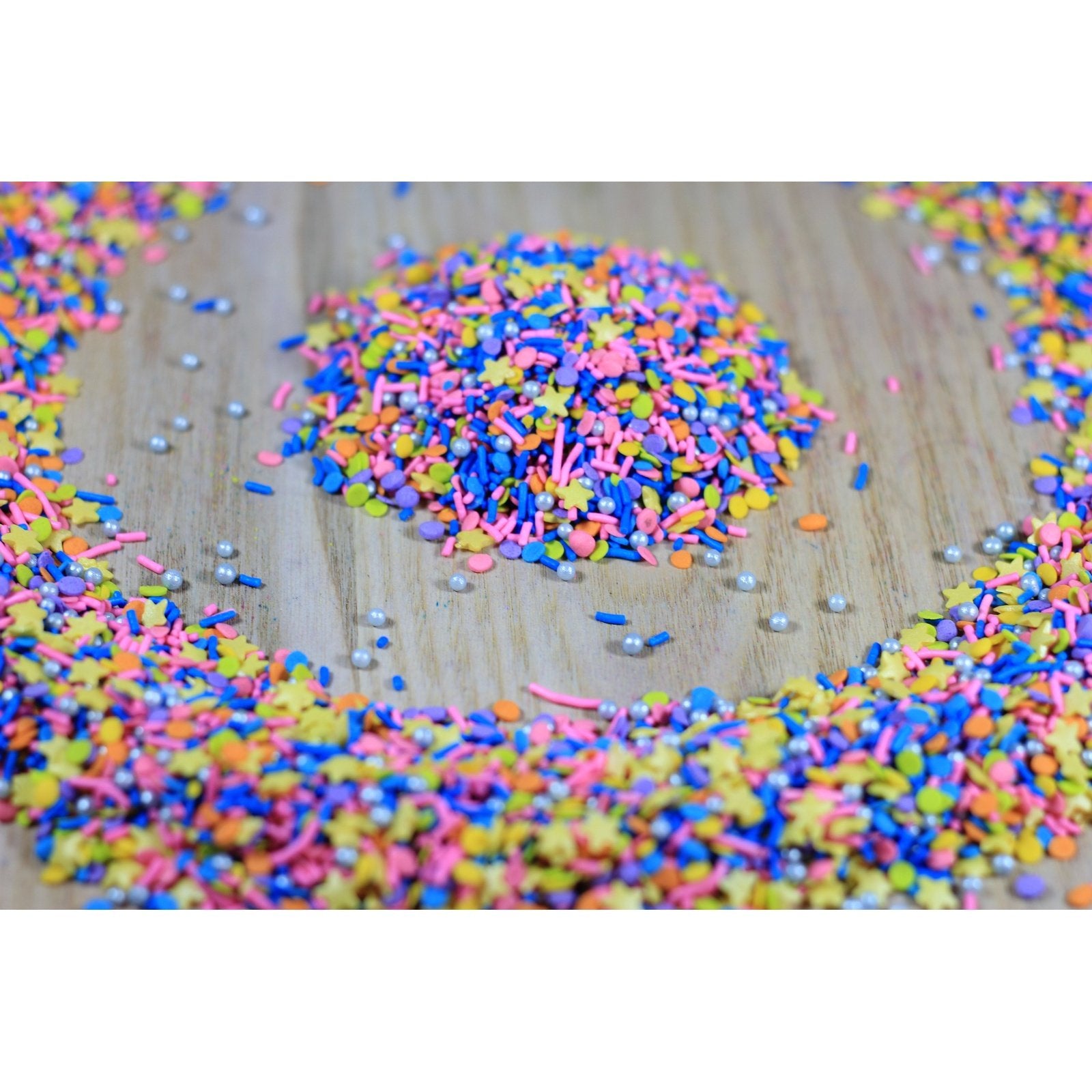 Colorful candy sprinkles mixes to add natural fun and flare to your creations. These are sugar based and will dissolve in water.
